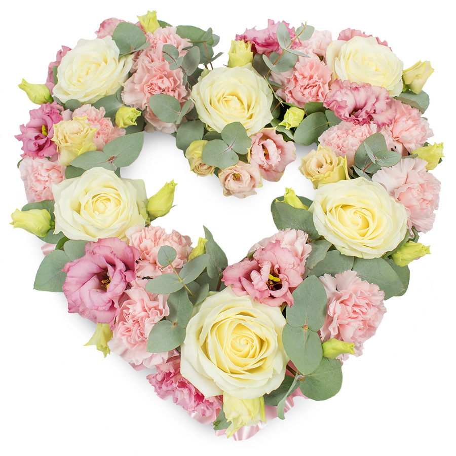 Show your heartfelt gratitude with our Lovely Open Heart Tribute Floral Arrangement. This charming bouquet features a delightful mix of white roses, pink carnations, pink lisianthus, and vibrant eucalyptus leaves. Each bloom is hand-selected to ensure exceptional freshness and beauty.